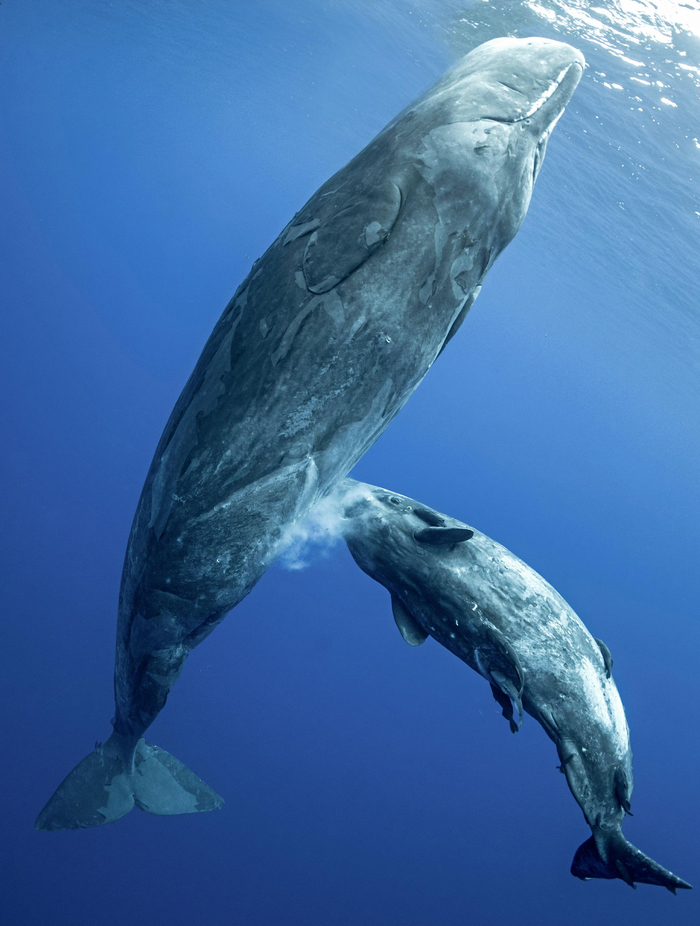 一只12米长的抹香鲸母亲正在喂养它的宝宝。图/IC photo
