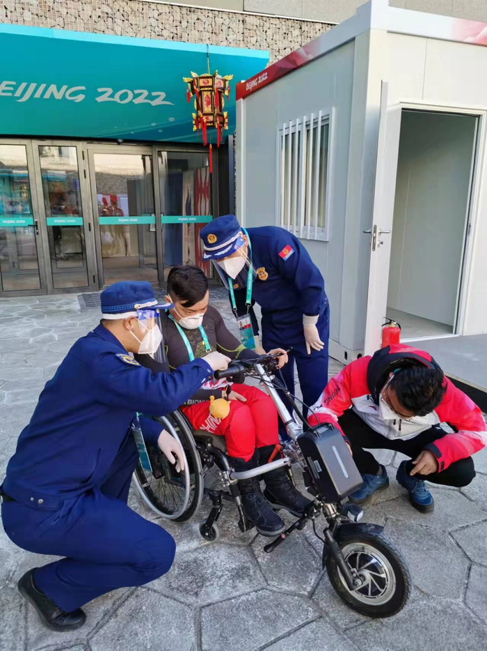 ▲2022年2月27日,消防安保团队为延庆冬残奥村安装电动轮椅电池智能充电柜,并为运动员现场讲解使用方法及注意事项。 受访者供图