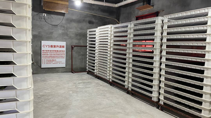 “这些都是蚕农提前预订的小蚕,小蚕养殖需要恒温恒湿,在共育室里生长至三龄期后,大概4月23日就可以发放给蚕农进行喂养。”赵元清说。