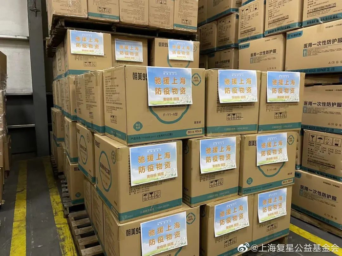 4月21日,上海复星公益基金会发布微博称,演员于和伟向上海捐赠一批升级版防疫包plus,共计3200件防护服、8000只医用口罩、6000双隔离鞋套、6000个防护面屏、20000只丁腈手套、3600支抗原试剂。这批物资由复星基金会“社区驰援”项目全部派送给20个社区,全部用于支持一线工作人员和志愿者,守护他们的付出。