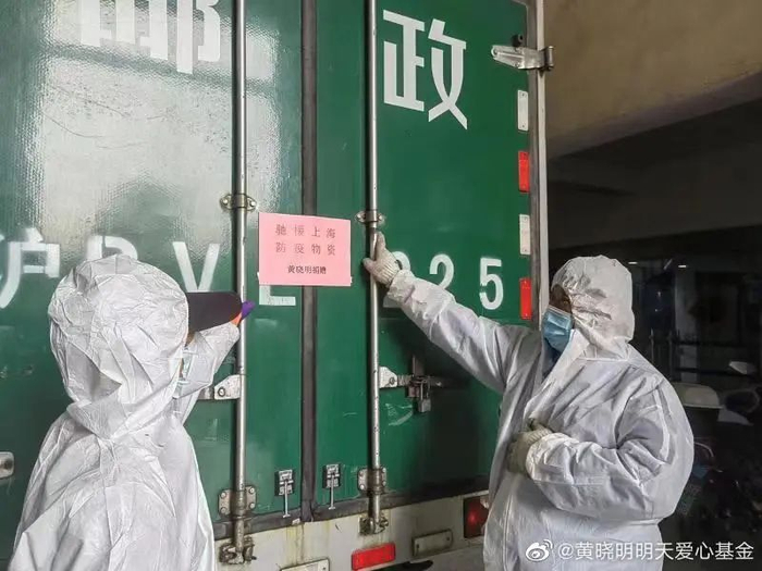 4月2日起,黄晓明联合黄晓明明天爱心基金在驰援吉林青岛之后开始驰援上海,截至4月18日,已累计向上海捐赠15吨生活物资,包括医用外科口罩(灭菌款)、医用非连脚防护服、防护靴套、防护口罩、防护面屏、84消毒液、静电喷雾电动消毒车等。
