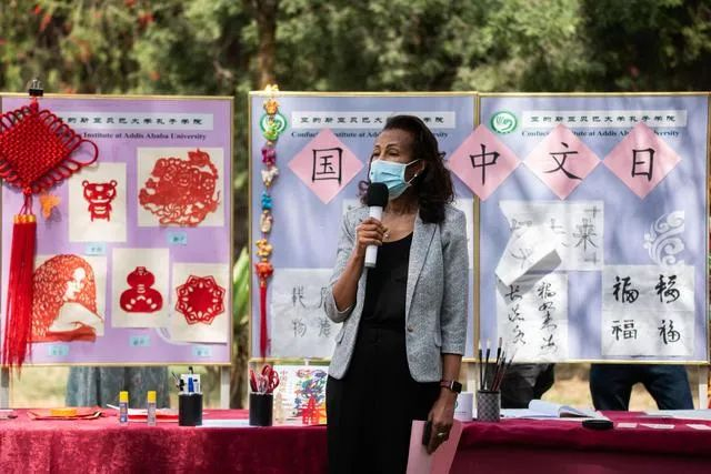 4月15日,埃塞俄比亚亚的斯亚贝巴大学上演了一场“中国文化秀”。学校的大草坪上摆满了花花绿绿的各式摊位,一群身着旗袍、汉服,头戴京剧脸谱的埃塞学子不时招揽路人,吸引了不少师生驻足观看。不少学生跃跃欲试,体验中国剪纸、汉服和书法,有人像模像样地跟着老师打起了太极。