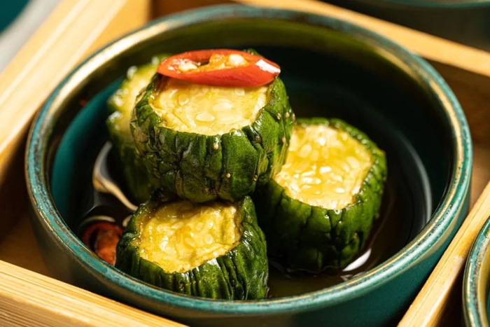三色的蔬菜看上去格外的新鲜,吃的就是这个地道的原汁原味!摆盘和造型都极为考究,让人不忍动筷!