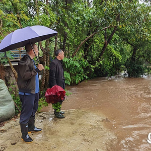 受降雨影响,4月24日上午,重庆青龙村道路积水严重。(图/秦银春)