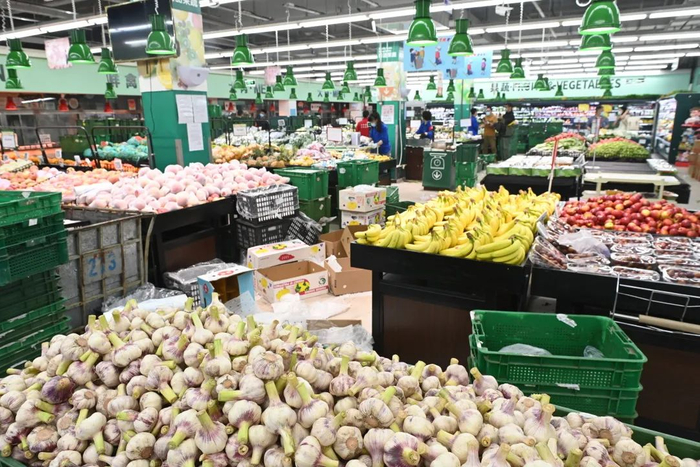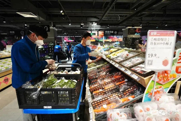 海南的圣女果、山东的茄子、河北的萝卜……店里销售的蔬菜、水果、肉品等生鲜商品都是原产地直采,这为超市能够及时补给提供了保障。张传涛说,今天店里蔬菜供应量达到15吨,比昨天增加20%,米面粮油供应量比昨天增加了两倍,同时商品价格保持不变。