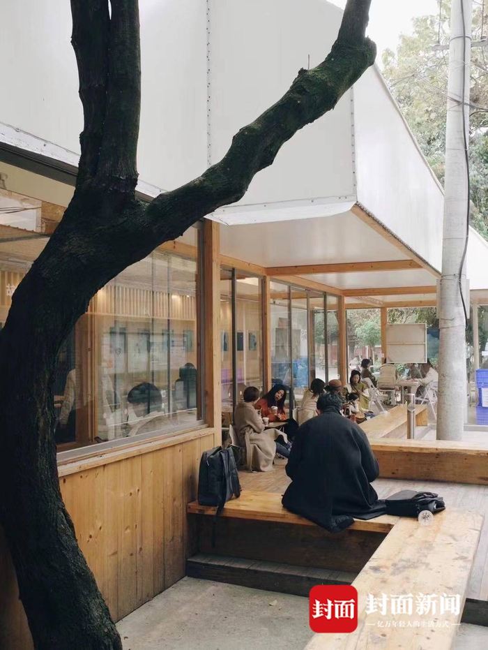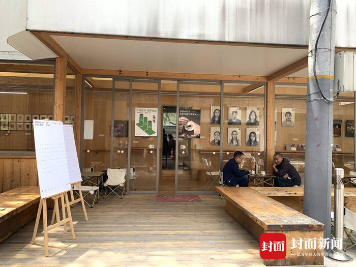 自从有了这道门,不管是办事的还是不办事的都喜欢来坐坐,社区里的年轻人来喝杯咖啡,买菜的老人路过也要坐一会,甚至有居民会带着象棋和牌在那边打,残障朋友来了,也不会觉得不舒服,因为它是个透明开放的空间,外面是大家都熟悉的街道,小孩也变得安全了,因为有很多双保护的眼睛。