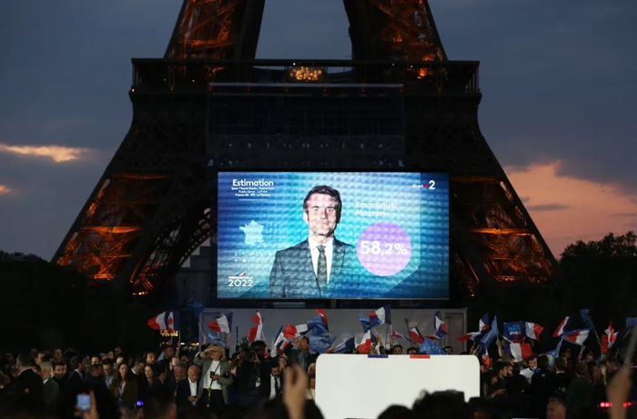 法国内政部25日凌晨公布总统选举第二轮投票统计结果,现任总统埃马纽埃尔·马克龙获得58.54%的有效选票,连任总统;极右翼政党“国民联盟”候选人玛丽娜·勒庞获得41.46%的有效选票。相比上届总统选举,马克龙和勒庞的得票率差距缩小。在2017年法国总统选举第二轮投票中,马克龙和勒庞的得票率分别约为66%和34%。