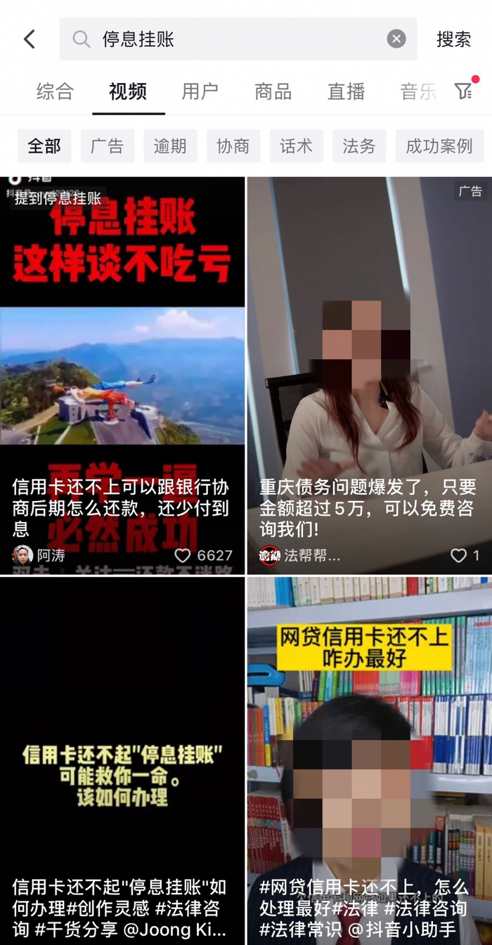 赵宇最近有点郁闷,一笔信用卡账单已经逾期了。偶然的机会,他在某短视频平台上看到债务“专家”推送的信息,上面写着“个性化协商延期”几个字,直戳他的痛点。