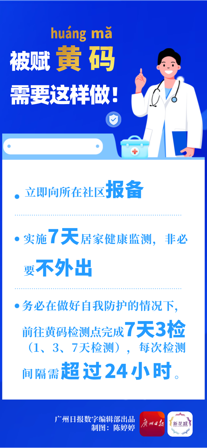 广州市卫生健康委副主任、新闻发言人陈斌表示,下一步将会根据最新流调情况及疫情防控的需要,实时动态调整管控区域、赋“黄码”人群及人群核酸检测范围。请市民密切关注各级政府部门发布信息,积极配合做好疫情防控工作。
