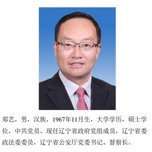 郑艺已任辽宁省政府党组成员、省公安厅党委书记