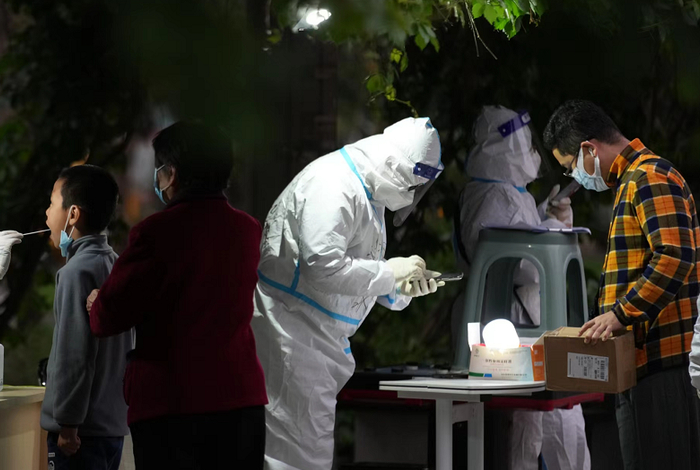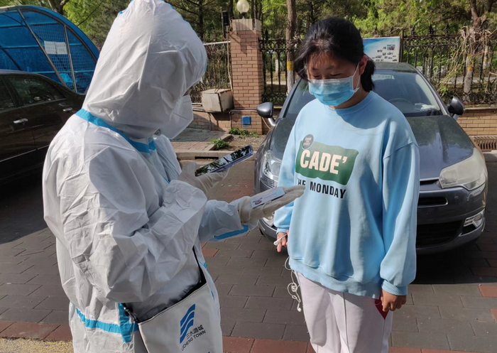 为打好疫情防控主动仗,有效阻断疫情传播风险,在通州区武夷花园紫荆雅园社区的第三轮核酸检测中,由社区在职党员组成的志愿者服务队,积极协助社区工作人员维持现场秩序,耐心解答群众相关问题,按照规定严格核验人员信息,帮助张贴核酸采样试管条码,保障核酸检测工作顺利进行。
