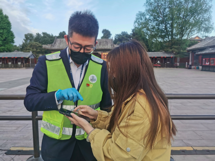 颐和园东宫门队门区班班长许童耐心地向游客解释:“疫情防控靠大家,最新的防疫要求咱们要有48小时以内的核酸证明才能入园,也请您理解。现在不光是进公园,就算是进入其他公共场合,也需要这个证明。没有做核酸的话,您去哪里都不方便,所以您还是早点儿做个检测,也欢迎您下次再来。”听他这么一说,游客们都表示,能够理解公园的工作,于是也很配合地离开了。
