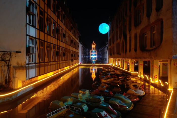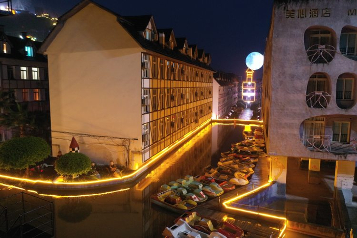 4月30日晚,位于涪陵美心红酒小镇的网红穿楼运河升级开放了夜游模式,并推出了《月照威尼斯》奇观。据景区相关负责人透露,全新亮相的《月照威尼斯》充分挖掘了桨声灯影文化,融入了“超级月亮”元素,对沿途灯光、小景点等进行升级,给广大的市民和游客朋友带来全新的观演体验。