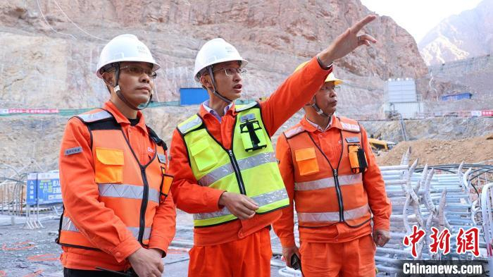 中新网新疆阿克苏5月1日电(记者 王小军)项目工地机器轰鸣声响彻山谷、作业区工人有序忙碌中……走进新疆大石峡水利枢纽工程Ⅰ标项目部,该项目经理李东飞在大坝打夯点位,为技术人员讲解注意事项。