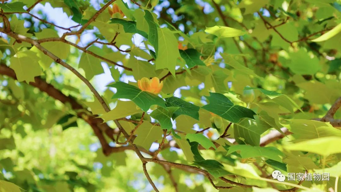 而且除了花,叶子也十分有特点,像是我国旧时男性所穿的马褂。也正因此,鹅掌楸还有另外一个名字——马褂木。