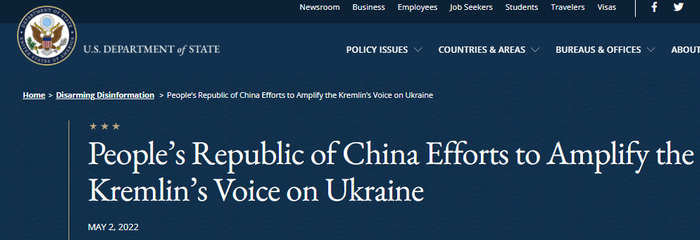 美国国务院声明还称,“这种放大使俄罗斯对乌克兰的无理战争合理化,同时破坏了对美国和其他国家、民主机构和独立媒体的信任。”声明还将矛头对准中国媒体,社交媒体,以及外交官的言论等。