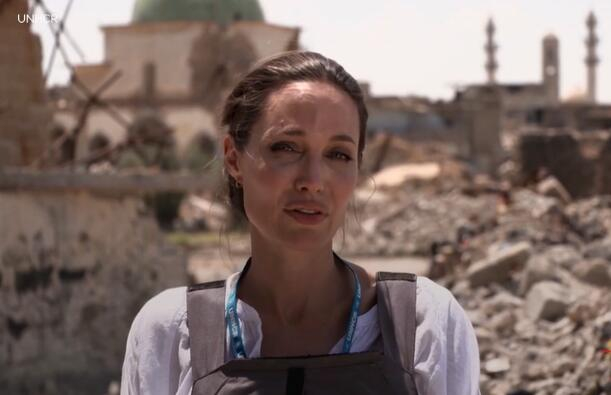 那句经典的“虽然他们一无所有,但他们自由了”,也正是诞生于2018年朱莉以难民署特使身份到访伊拉克北部城市摩苏尔的时候。