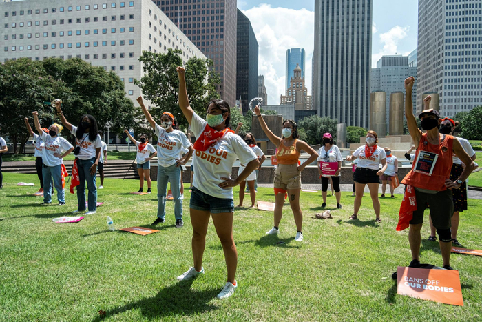 2021年9月1日,美国得州,多名女性举行示威活动抗议“最严堕胎法” 图源:澎湃影像
