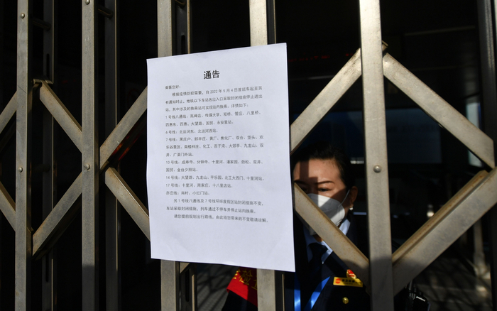 5月4日,北京地铁7号线百子湾站已封闭,出入口张贴了相关通知。新京报记者 王贵彬 摄