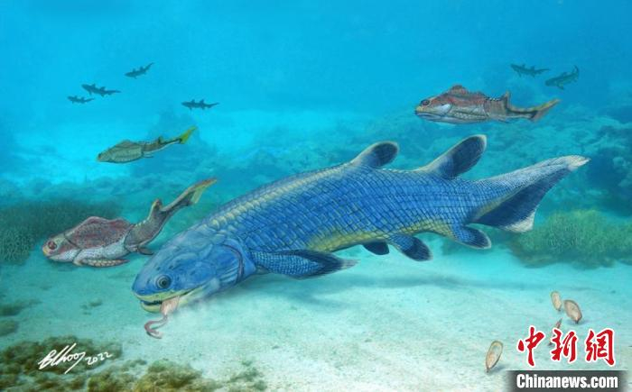 “先驱杨氏鱼”生态复原图。 Brian Choo 绘图