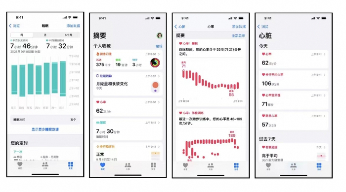 “健康”App会自动计算用户步数、步行和跑步距离。通过Apple Watch还会自动追踪健身记录资料,让她了解自己在过去不同时段内的健康变化。如果设定“医疗档案”,在有需要时可帮助急救人员获取重要医疗资料以及紧急联络人。