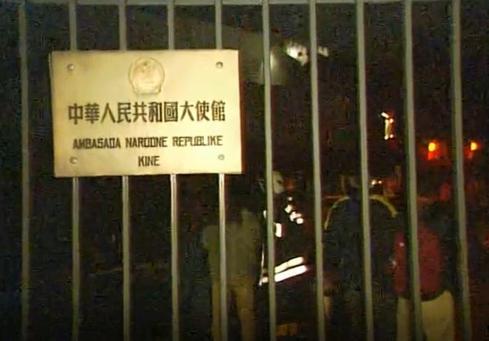 我当时觉得这难以置信,于是迅速坐车前往新贝中国大使馆所在地。轰炸期间晚上路上空荡荡的,我大概用五分钟就从米拉大道到了中国大使馆,还赶在了消防队和救援队伍之前。当时第一时间从使馆逃出来的人,脸上被轰炸熏的全是黑糊糊的。我协助一些人撤到了离使馆稍微有点距离的地方,然后他们躺在草坪上,完全无法正常呼吸,估计是轰炸之后使馆内部缺氧。