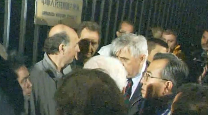 这是一次可怕的暴行,在此之后我们组织了媒体团队拍下了火海中的大使馆。我马上给米洛舍维奇打了电话,跟他说中国大使馆被炸了。