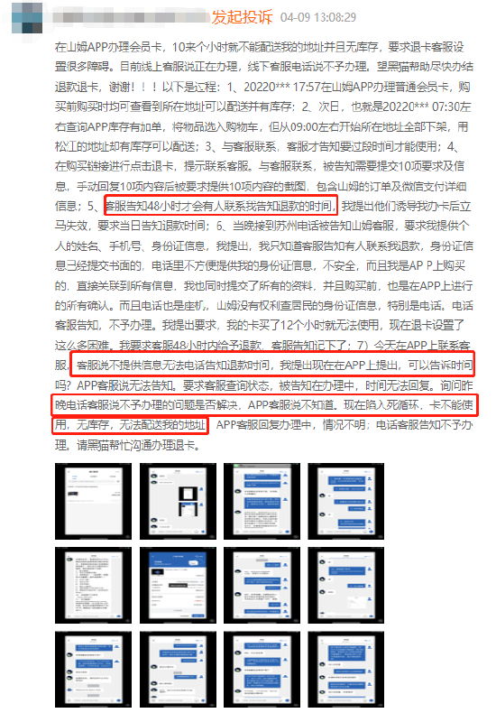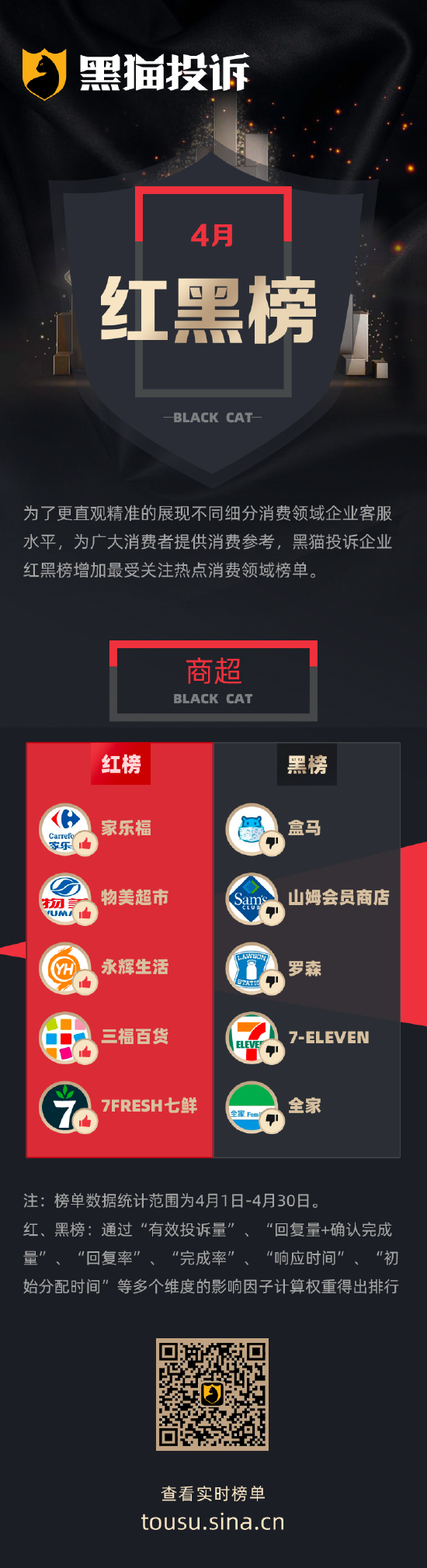 4月黑猫投诉商超领域红黑榜——山姆会员商店退卡不退款