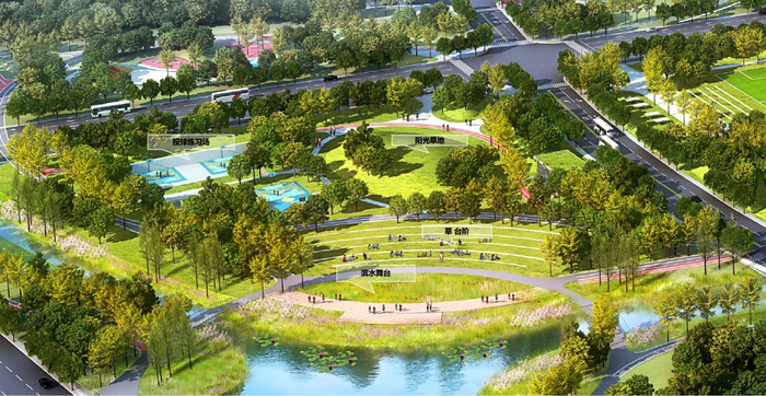 体育公园在植被规划方面也进行了精心设计,分为都市康养植被景观区、活力门户植被景观区、滨水涵养植被景观区和城市生态植被景观区。