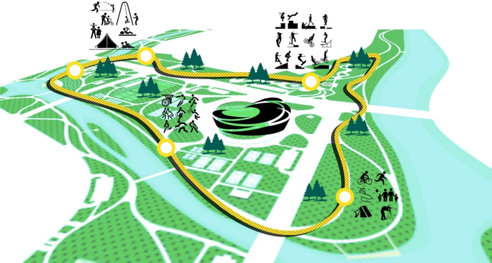 据介绍,体育公园整体构建五大类型运动区域,满足不同人群运动活动需求,包含各类球类运动、综合体育赛事、极限运动、趣味活动、有氧运动、康体健身、观景游玩、休闲交谈等。