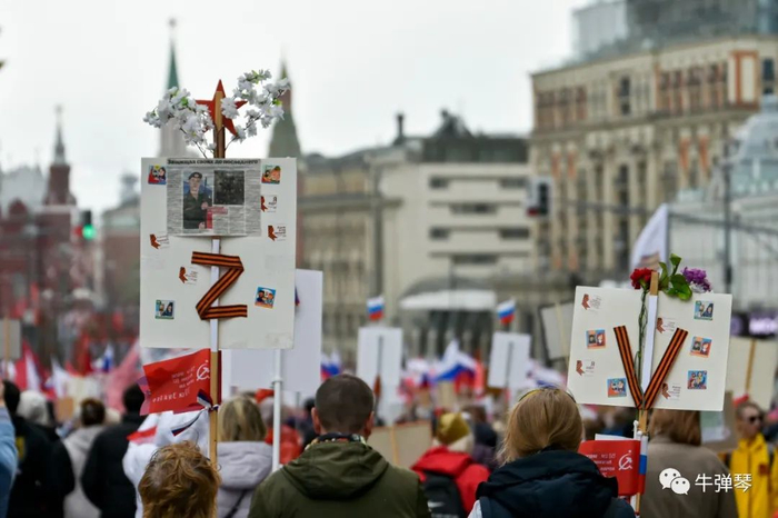 很让人感慨地,还有一些家属举着明显是在乌克兰阵亡将士的照片,一起参加了这个特殊的游行。