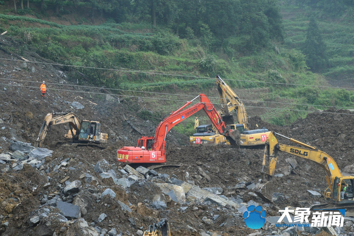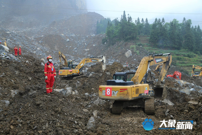 5月9日至11日,根据联合指挥部研究部署,救援分队采用“网格推进、分层搜救”的战法对失联人员展开搜救。搜救过程中,救援人员按照“1+5”模式(1台工程机械配1名指挥员、1名观察员、1名操作手、1名安全员)编配救援力量,7个小组通过“机械不停、人员轮班”的方式同时展开搜救工作。截至5月11日14时,累计开挖崩塌体7900立方米,转渣2800立方米。