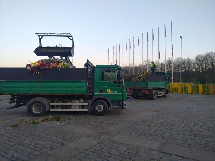 然而,在度过了较为风平浪静的9日后,10日清晨,人们却发现胜利公园纪念碑的鲜花被铲车铲走了。根据社交媒体上的视频,在10日一早,就有铲车在胜利公园作业,铲车铲起地上的鲜花,倒入卡车中。