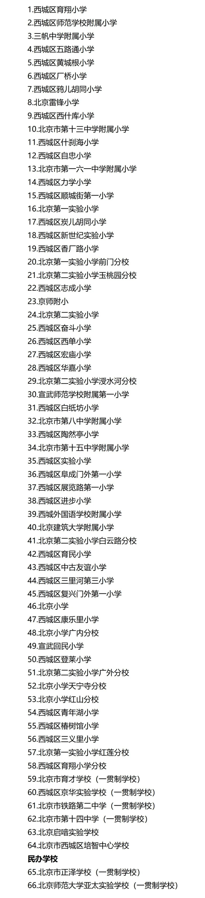 西城区2022年小学入学有招生资质学校名单