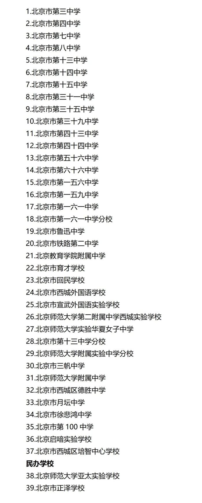 西城区2022年初中入学有招生资质学校名单