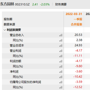 截至5月11日收盘,东方园林收报2.41元/股,跌2.03%。年初至今,东方园林股价已下行19.13%。