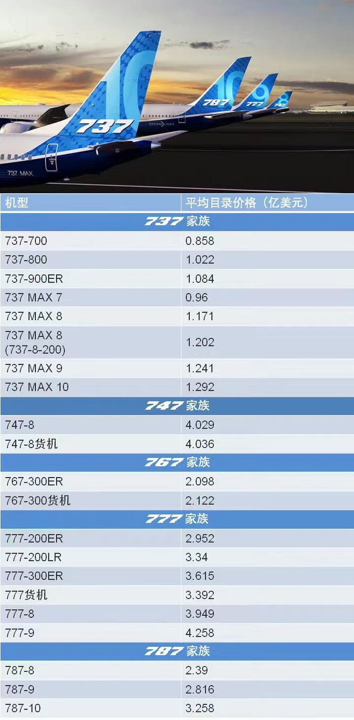 2018年双11,波音官方微博公布了波音旗下民用飞机目录价格,波音737 MAX 8售价1.17亿美元。而之前公开的波音737-800售价为1.06亿美元。而根据中国国航2021年3月18日发布的公告,其购买的18架空中客车 A320 NEO系列飞机,基本价格合计约为22.365亿美元,平均每架成交价1.24美元。