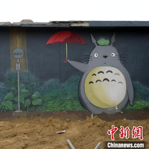 漫画与村居巧妙结合,成为独特的景色。 姜志朋 摄
