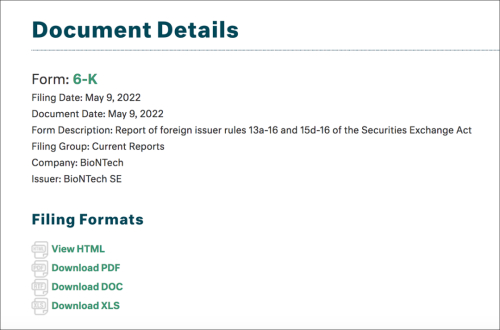 在BioNTech公司官网上可以找到公司提交给美国证券交易委员会的一份54页的财报文件。
