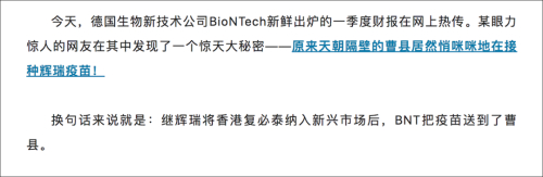 中文网络流传消息称,根据德国生物新技术公司BioNTech新鲜出炉的一季度财报,朝鲜居然“悄咪咪地在接种辉瑞疫苗”。