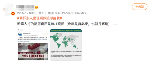 朝鲜首次报告新冠确诊病例之际,中文网络流传消息称,根据德国BioNTech公司财报,朝鲜已经悄悄打上了辉瑞疫苗。