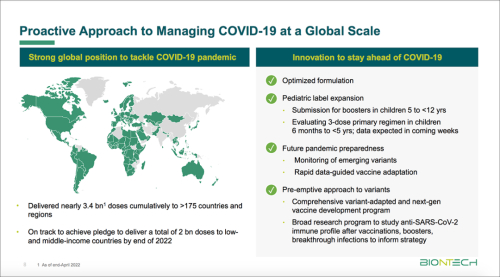BioNTech公司官网上还可以找到另外一份演示文件,名为“2022年第1季度财务业绩和公司最新情况”,也发布于2022年5月9日,是对财报文件的幻灯片演示。