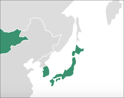该地图(局部放大)显示,朝鲜显示为绿色,也即意味着朝鲜获得了辉瑞-BioNTech(BNT162b2)新冠疫苗。