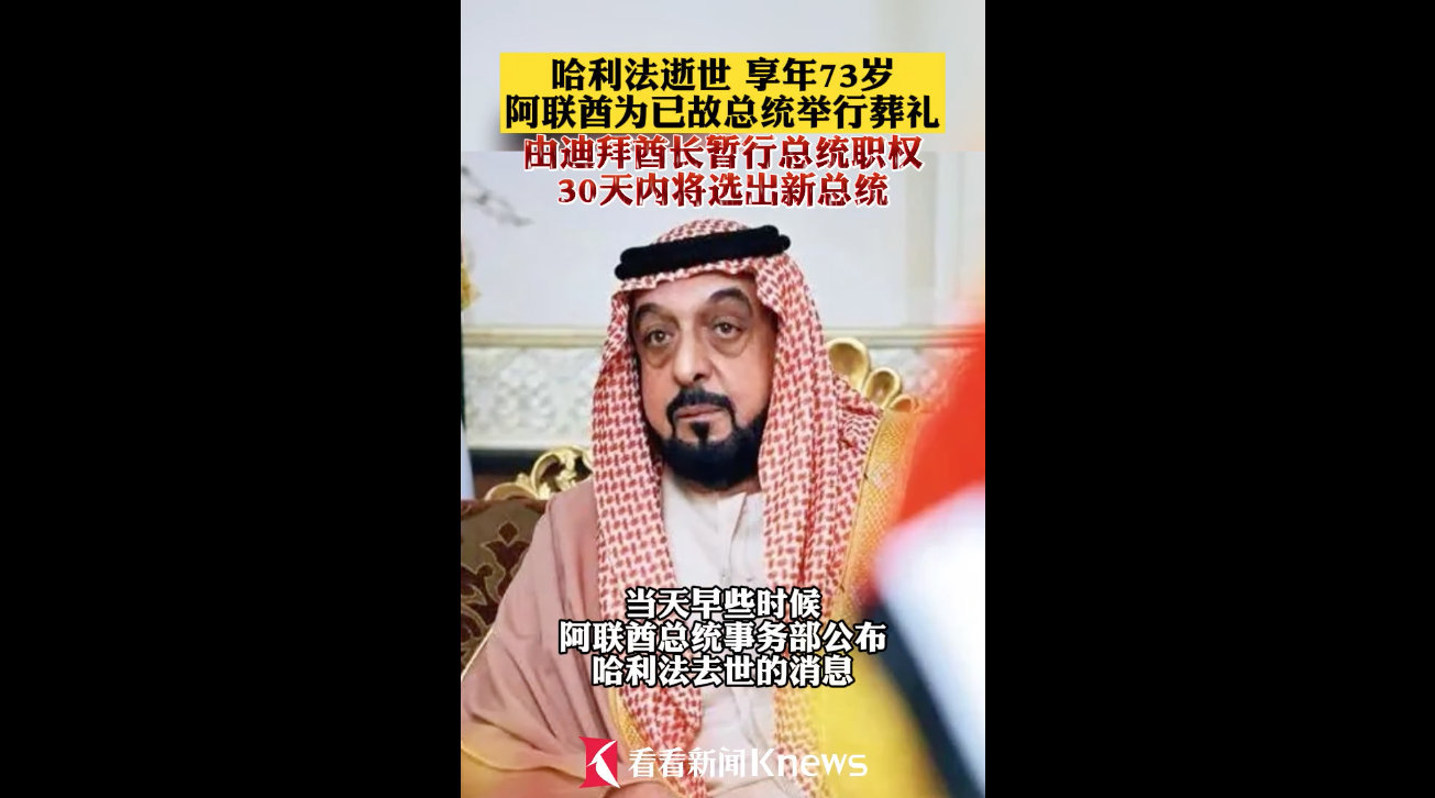 一天前,5月13日,阿拉伯联合酋长国总统事务部宣布,时任阿联酋总统谢赫·哈利法·本·扎耶德·阿勒纳哈扬于当日逝世,享年73岁。