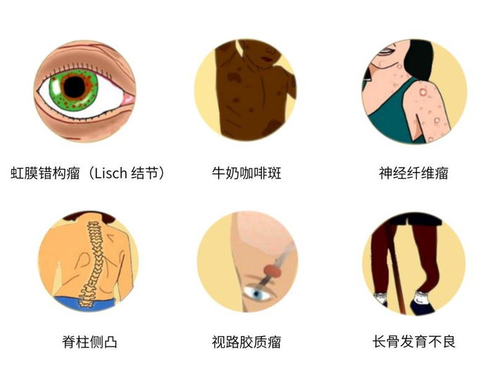 第一,主要是斑,瘤体和系神经症状。儿童出生时发现身体和躯干上出现超过六块多发咖啡牛奶斑,就要高度怀疑是否有可能患有神经纤维瘤病。第二,整个发育过程中,如果出现全身多发皮下可触及结节,或者是明显的左右侧躯干不对称,这也需要高度重视。第三是症状,如果外形没有出现任何变化,但是却出现了不可解释的持续性疼痛和麻木,这也是值得被高度怀疑的症状。