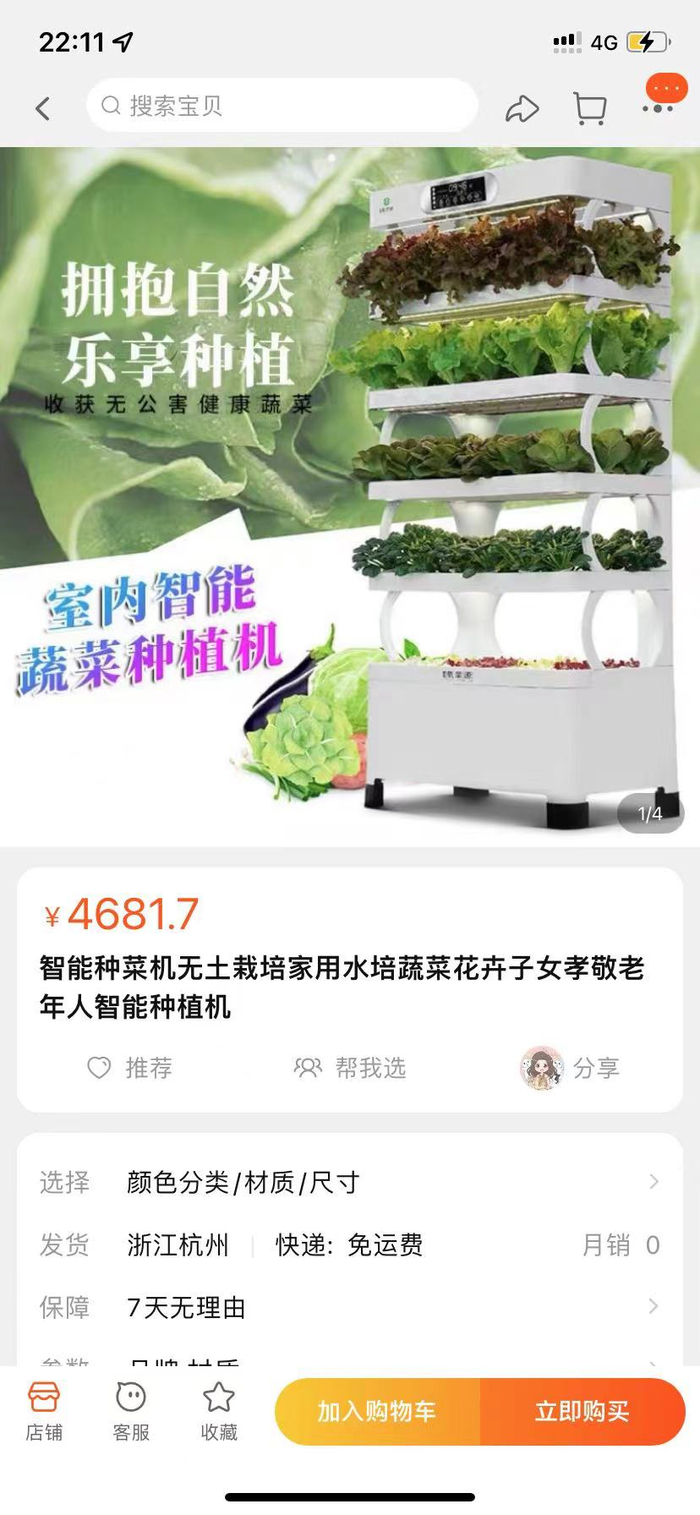 市面上销售的一款大型种植机有五层,高度可达1.7米,拥有接近400个育苗位置,号称家里拥有一台便从此不用买菜,售价达3881元。