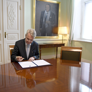 当地时间2022年5月17日,芬兰赫尔辛基,芬兰外长哈维斯托签署了该国的“入约”申请信。图/IC photo