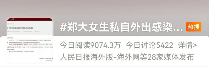 另据南阳司法行政在线推文中称,郑大学生爆料,“五一那天翻墙出去的一大堆,但是谁都没感染,就这个女生感染了。”
