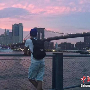 傍晚的布鲁克林大桥和曼哈顿岛。中新财经 宫宏宇 摄