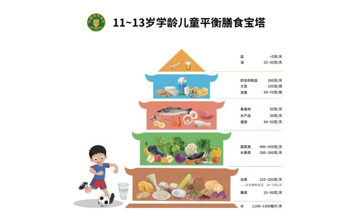11-13 岁学龄儿童儿童平衡膳食宝塔